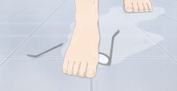 そして、エンディングテーマ後のおまけで、皆で風呂に入るシーンが描かれたわけですが、その中で、五條君が監督(辻 桐仁)の眼鏡を踏んで壊してしまいます。↓